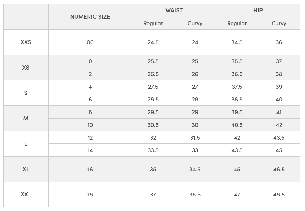 RISE High rise: sits 1/2" to 1" below natural waist