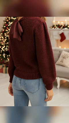 Elegant Sparkling Bubble Sleeve Sweater with Back Tie